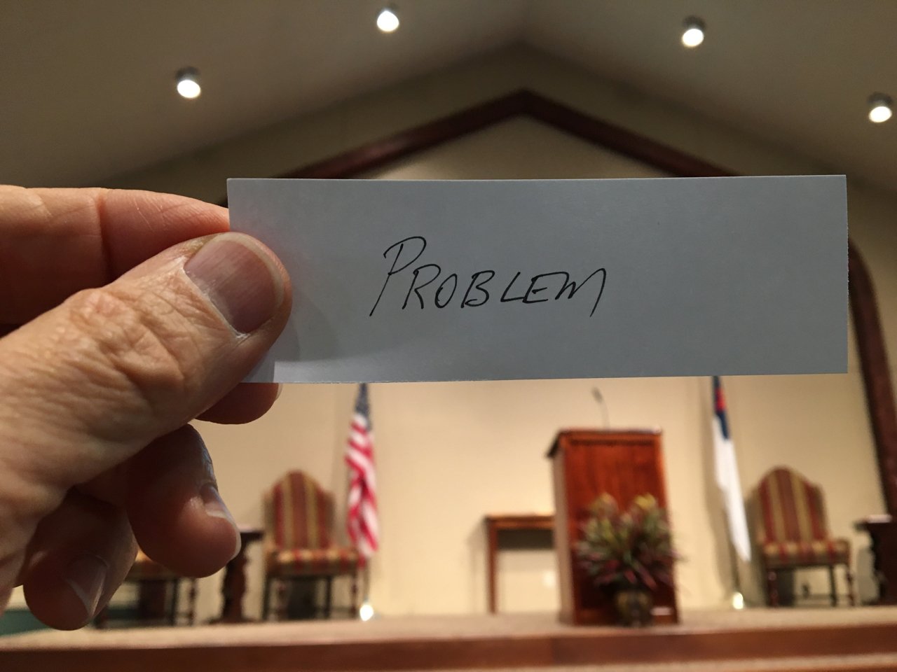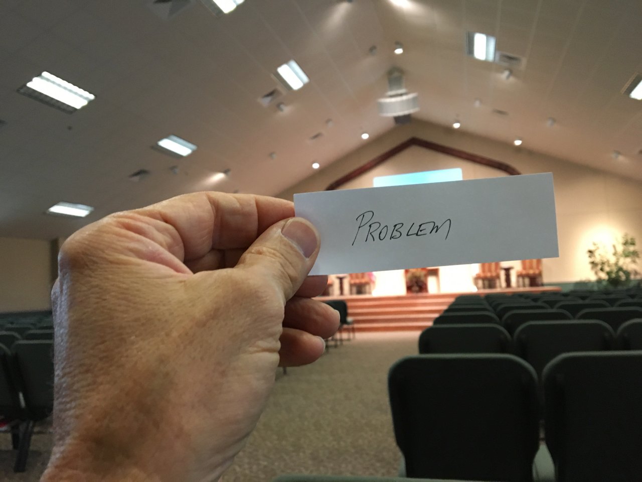 - Those of you in the back, how much does your PROBLEM eclipse THE LORD? [Note: It covers the entire platform and all of the front wall].