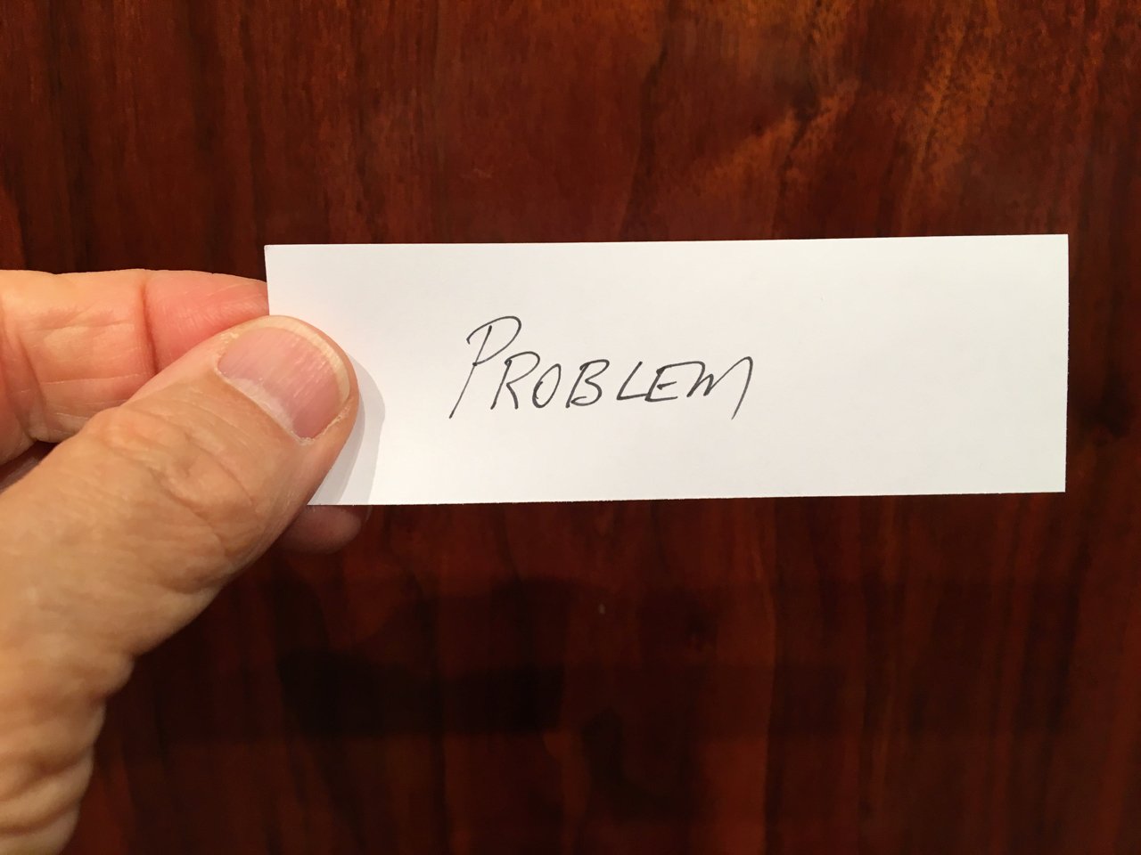 Third principle, the closer you draw your problem to you, the bigger it appears. Your problem is only as big as the paper in your hand, but it appears bigger, closer to you, than it does further away. From the back, when you hold your PROBLEM a foot away from your face, it appears to be 7 feet tall by 20 feet wide. That’s 56 times larger than it really is.