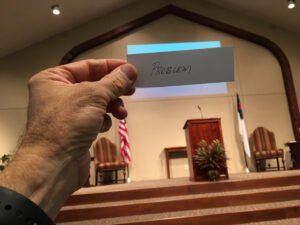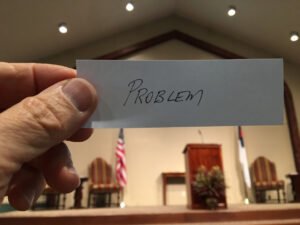 We all have to deal with problems. The key is to cast your cares on God. Don’t let them get between you and THE LORD. They will only get worse. Notice the truths contained in casting your cares on the Lord. [Note: each person in the congregation is holding a small piece of paper with the word PROBLEM written on it].